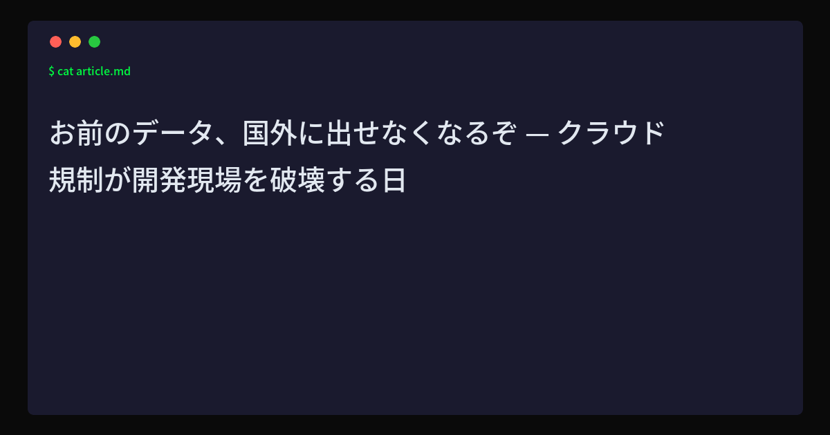 クラウドコンピューティングの普及に伴い、データの保管場所と取り扱いに関する法規制が世界各国で急速に整備されている。2026年現在、データローカライゼーション(データの国内保存義務)を導入した国は60カ国を超え、クラウドイ...